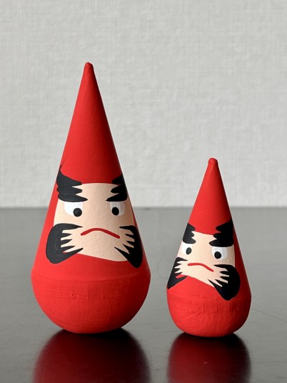 | 新潟日報記事より | 新潟 三角達磨 2ヶセット¥1,320 高さ 11.5cm と 7.5cm |