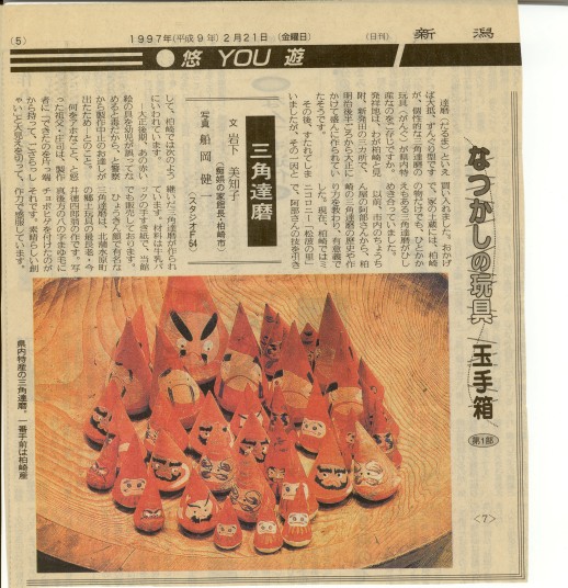 | 新潟日報記事より | 新潟 三角達磨 2ヶセット¥1,320 高さ 11.5cm と 7.5cm |