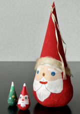 「サンタとツリーのセット」 「昭和30年代、輸出用に作られた 60年前のサンタダルマを 家内喜屋のサンタダルマ」と 復刻版ミニサイズミニサイズで作成 大きさ比較 |